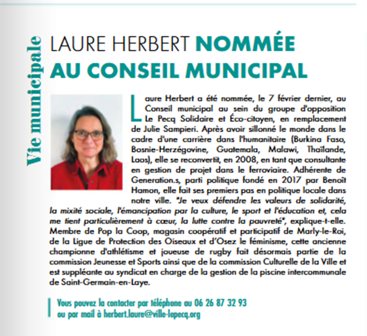 Laure Herbert nommée au conseil municipal le 7 février 2024