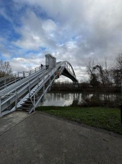 Nous proposons d’étudier la construction d’un pont piéton et cycliste reliant le chemin de halage du Pecq au quai du 8 mai 1945, un ouvrage qui s’inscrirait dans une dynamique locale et régionale croissante en faveur des mobilités douces. Cette passerelle serait pensée dès sa conception comme un ouvrage accessible à toutes et tous, avec notamment l’installation d’un ascenseur ou d’un dispositif équivalent, permettant l’accès aux personnes à mobilité réduite, aux personnes âgées, aux parents avec poussettes et aux cyclistes. Des exemples concrets tout proches Ce projet n’est pas une idée isolée : il s’inspire de réalisations et d’initiatives déjà concrétisées ou en cours autour de nous.